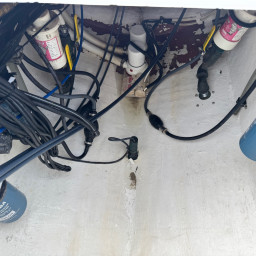 - Blue gel coat hull